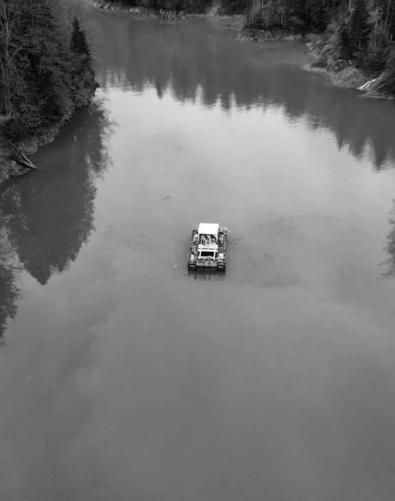 - Schwimm-Ponton wurde von Illwerke VKW AG für Sondiergerät (Stand Alone – Geomil-Fox-System) umgebaut, mittels Boot positioniert & mit Stahlseilen fixiert