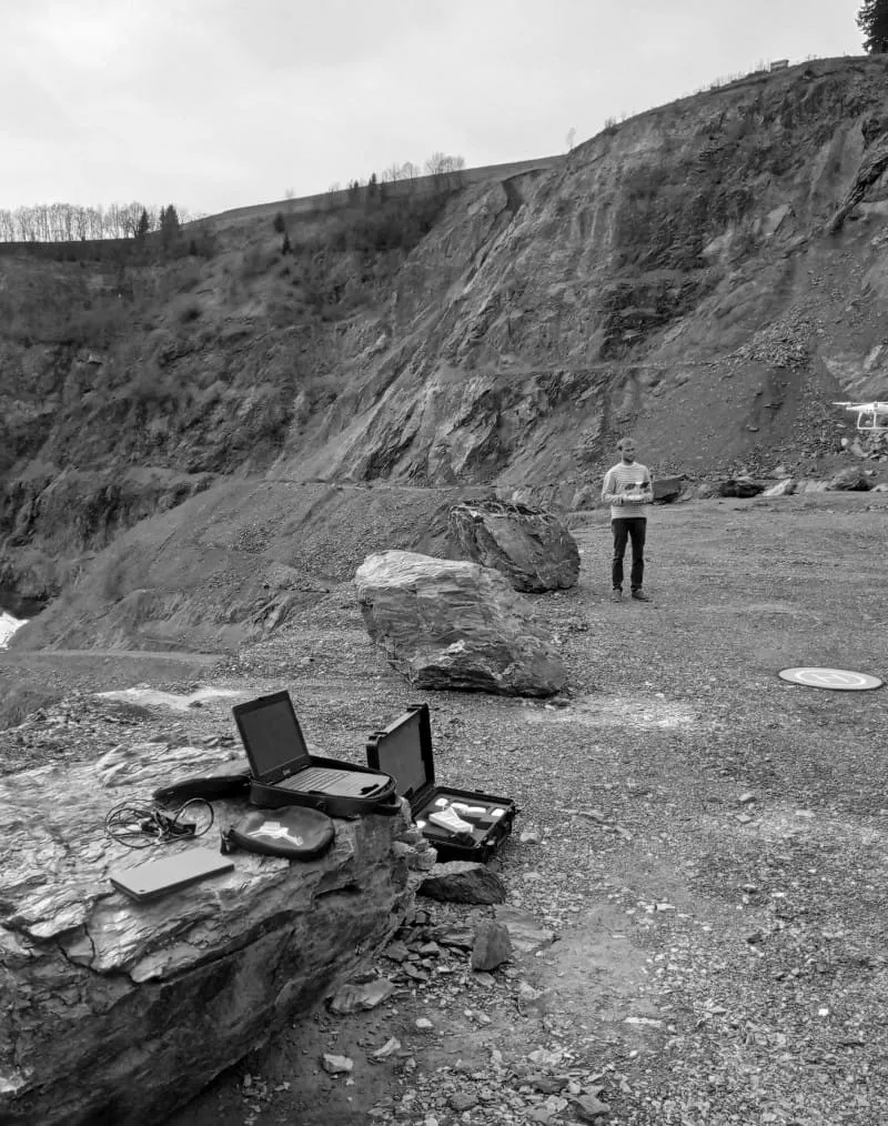 - Vermessungen mit Folgemessungen der Massenbewegungen des Steinbruchs